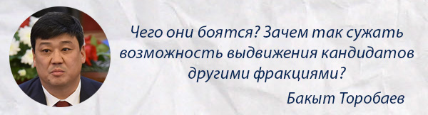 «Мы реально будем бороться за должность мэра. Мы разговаривали с депутатами, и если сохранят процедуру тайного голосования, наш кандидат имеет все шансы стать новым мэром Бишкека», - заявил Бакыт Торобаев.