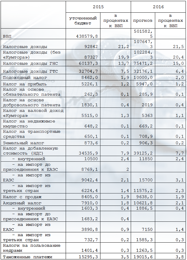Бюджет на 2016 год сверстан с расчетом вступления Кыргызстана в Евразийский экономический союз и повышения акциза на водку, табак и бензин. Похожая корректировка была и в этом году. Однако из-за позднего вступления страны в ЕАЭС достичь планируемого уровня доходов не удалось. Остается надеяться, что в следующем году мы воспользуемся всеми преимуществами евразийства.