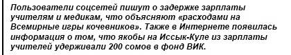 Проведение II Всемирных игр кочевников не отразилось на выплате зарплаты бюджетникам. Об этом сообщает пресс-служба Министерства финансов.