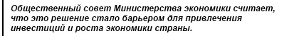 «Решение о введении платы за присоединение к электрическим сетям, скорее всего, принято без анализа регулятивного воздействия на экономику страны. Последствия будут плачевными: в стране существенно сократится число новых предприятий, рабочих мест, бюджет останется дефицитным», - говорится в документе.