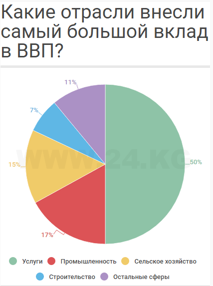Без учета предприятий по разработке месторождения Кумтор ВВП составил 326 милилардов сомов и вырос на 3,3 процента. На росте внутреннего валового продукта сказалось увеличение объемов производства в сельском хозяйстве, строительстве и сфере услуг.