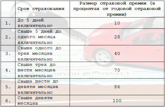 При заключении договора страхования на срок менее 12 месяцев устанавливаются следующие размеры страховых премий:
