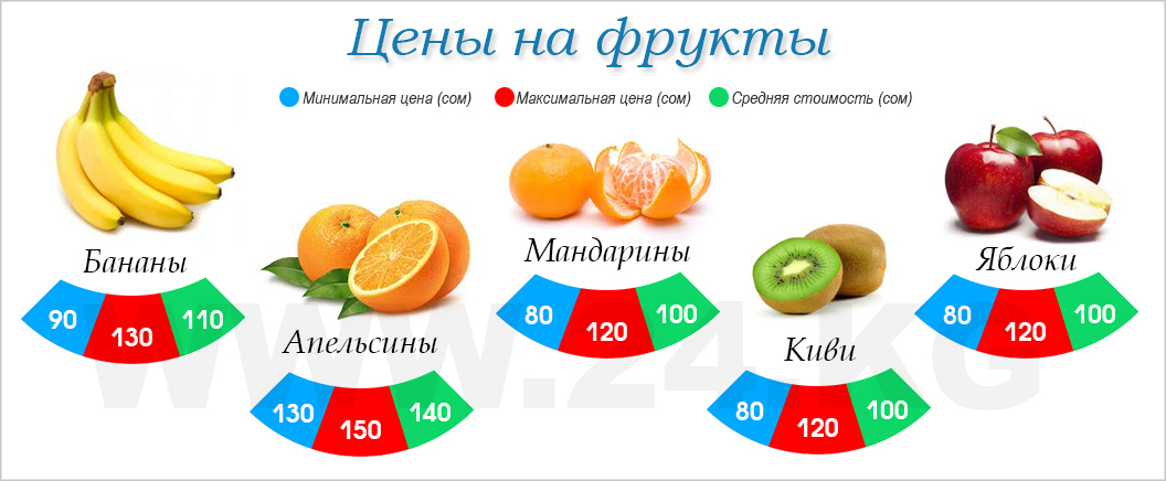Что касается остальных блюд новогоднего стола, то здесь каждый, безусловно, ориентируется на свой вкус и кошелек. Но поскольку наступающий год обозначен символом Обезьяны, то астрологи советуют обязательно отвести место на новогоднем столе фруктам. Если брать в расчет, что для новогоднего стола вы возьмете по полкилограмма каждого вида фруктов, то к новогодним тратам прибавится еще 235-340 сомов. Недорого, зато полезно.