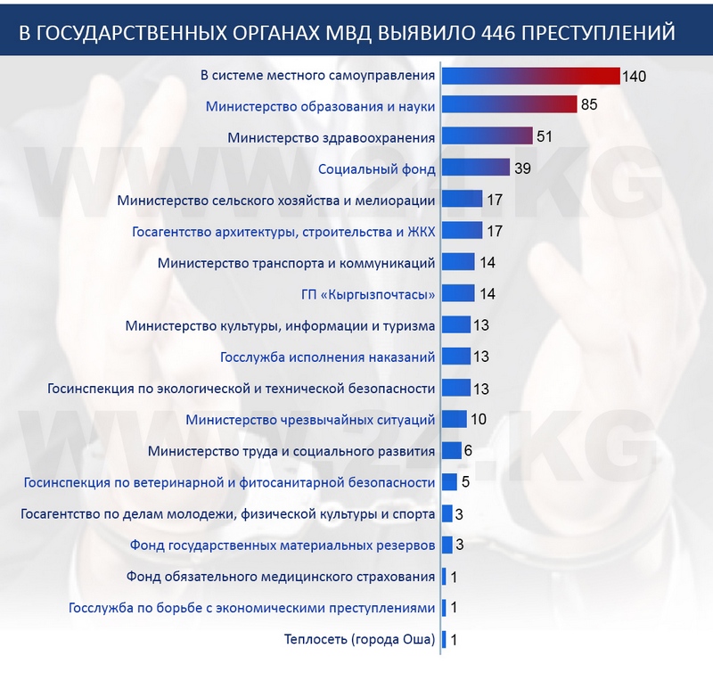 По закрепленным за МВД 22 госорганам выявлено 446 преступлений: