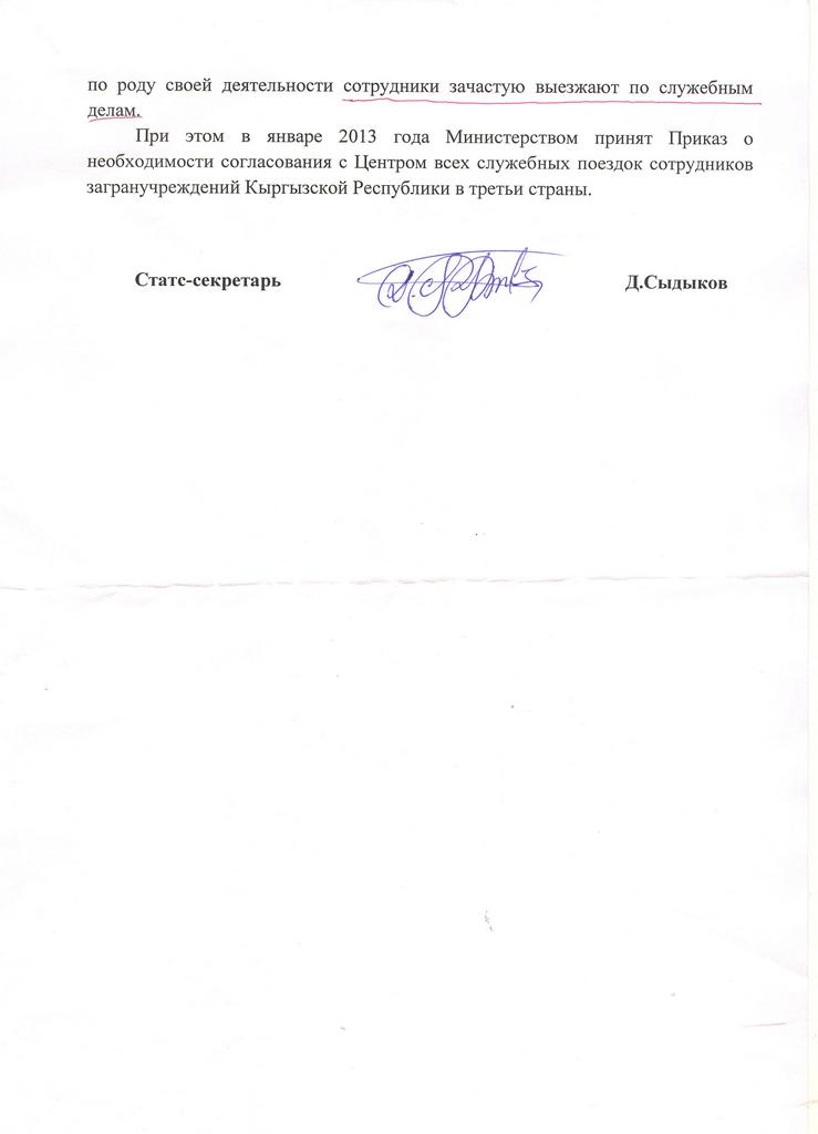 Напомним, в 2012 году Дмитрий Ли являлся советником обезглавленного в то время посольства КР в Минске. И ни для кого не секрет, что для посещения стран Европейского союза, а Польша входит в данное объединение, необходимо наличие Шенгенской визы. Согласно информации МИД, посольство КР в Минске также представляет Кыргызстан в Литве и Латвии, входящих в Шенгенскую зону, и по роду своей деятельности, сотрудники зачастую выезжают по служебным делам. Вряд ли шопинг, о котором писали в первом письме, входит в категорию служебных поездок.