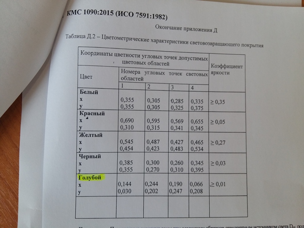 Также, проанализировав Национальный стандарт КР, разработанный ГРС, выяснилось, что в приложении «Д» вышеуказанного документа фотометрические характеристики световозвращающего покрытия полностью скопированы с Государственного стандарта РФ ГОСТ Р505077-93 «Знаки государственные регистрационных транспортных средств. Типы и основные размеры. Технические требования».
