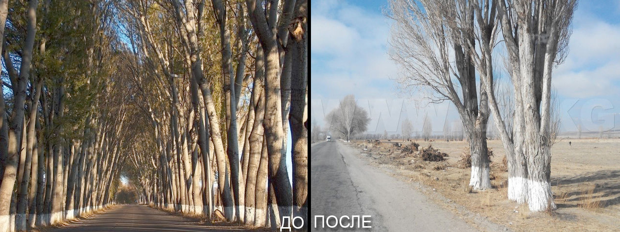 Поэтому и доводы гражданских активистов о том, что «срубленные деревья были здоровы, достаточно взглянуть на срезы пней», никто не принял. Наоборот, местные власти настойчиво убеждали общественность, что «делается это и в интересах безопасности, соблюдения технических норм, согласно которым деревья должны быть подальше от дороги». В итоге вырубку аллеи, которая многие годы являлась визитной карточкой Прииссыкулья, одобрил глава государства.