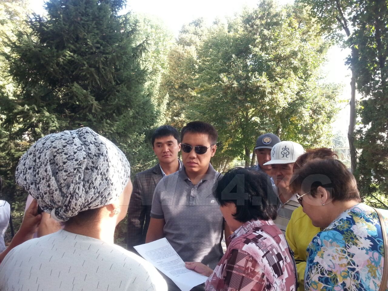 По их словам, Дастан Бекешев, прикрываясь властью, лоббирует интересы главы общества Калыка Мамбетакунова. «А он коррупционер, из-за его противоправных действий мы не можем получить жилье, хотя стоим в очереди много лет, - говорят собравшиеся. Вместо этого в квартиры, которые предназначены нам в ведомственном доме, въезжают не члены нашего общества, а посторонние люди, причем совершенно здоровые. Мы хотим, чтобы Калык Мамбетакунов оставил свой пост, а Бекешев сдал мандат».