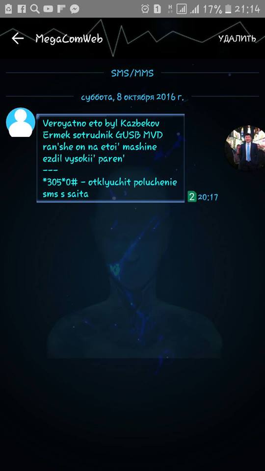 В нем говорилось, что, «вероятно, это был Казбеков Эрмек, сотрудник ГУСБ МВД. Раньше он на этой машине ездил, высокий парень».