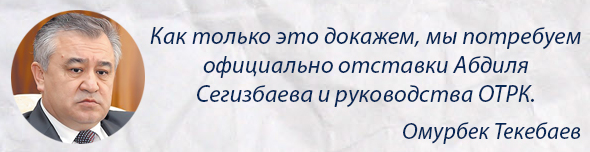 По словам нардепа, он ждет ответа из Белиза, доказывающего, что письмо, которое представил глава ГКНБ Абдиль Сегизбаев о якобы причастности Текебаева, Аиды Саляновой и Алмамбета Шыкмаматова к трасту акций MegaCom через оффшор в Белизе, — фальшивка.