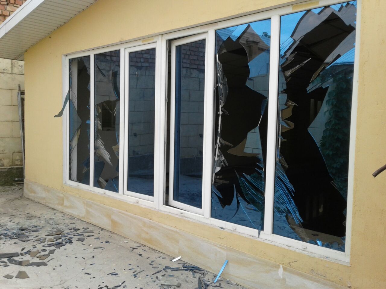 14.22 В одном из домов возле китайского посольства ударной волной от взрыва выбило практически все стекла. (фото)
