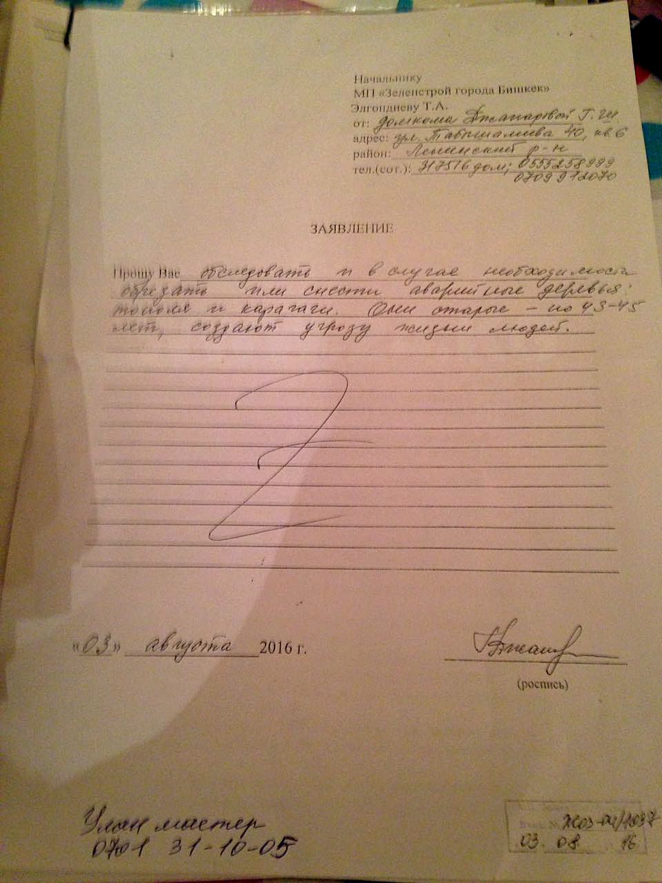 Возможно, следуя модным тенденциям, в «Зеленстрое» решили принимать сообщения исключительно по WhatsApp. Иначе как объяснить игнорирование официального заявления жителей дома по улице Табышалиева, находящегося всего ничего - в квартале от столичной мэрии? Правда, неподалеку от этого места, как написала на своей странице в «Фейсбуке» журналист Наталья Любезнова, «на улице Чокморова «Зеленстрой» повырубал почти все деревья». «Как мне жалко мой город», - добавила она.