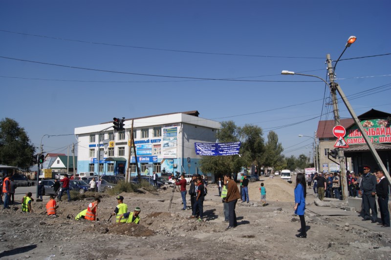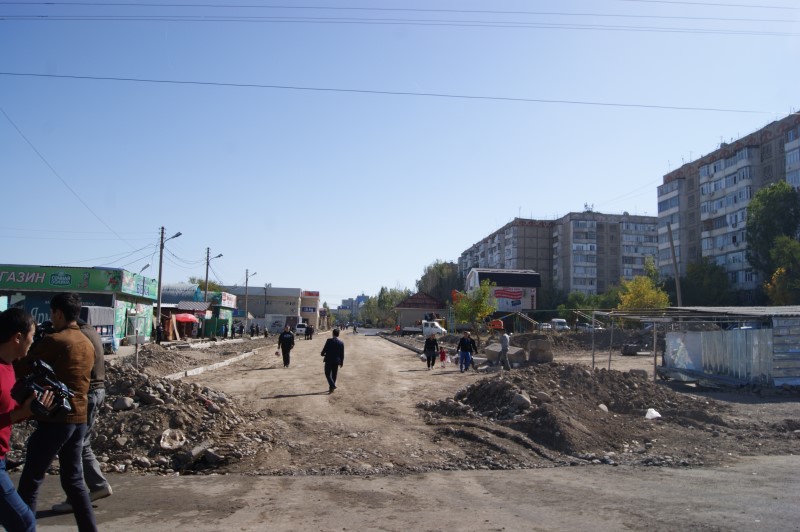 Сначала автобусы с чиновниками и журналистами направились на улицу Ауэзова, где идет реконструкция (от улицы Анкара до Салиевой протяженность 2,7 километра). Мэр Кубанычбек Кулматов рассказал, что за счет гранта правительства Китая ведется реконструкция и капитальный ремонт трех улиц: Махатмы Ганди, Жукеева-Пудовкина, Ауэзова; за счет городского бюджета – Садыгалиева и Патриса Лумумбы; из республиканского бюджета – улица Саманчина. «На Жукеева-Пудовкина и Ауэзова сейчас ведутся работы по устройству тротуаров, лотков и съездов. На улице Махатмы Ганди завершены работы по устройству двухслойного асфальтобетона. До конца октября данные объекты будут полностью сданы в эксплуатацию», - пояснил мэр.
