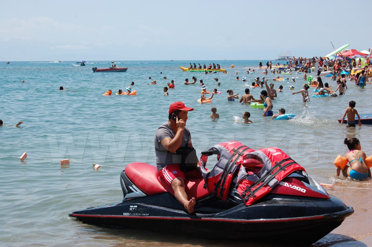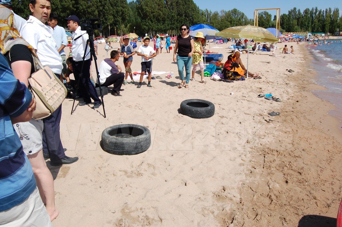 На вопрос, нормально ли, что одни отдыхающие катаются на скутерах там же, где другие купаются, инспектор ответил, что проблему нужно решать с айыл окмоту, которым принадлежит пляжная зона.