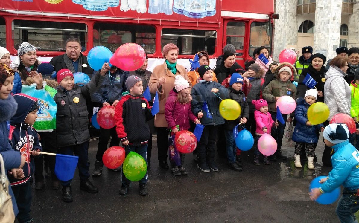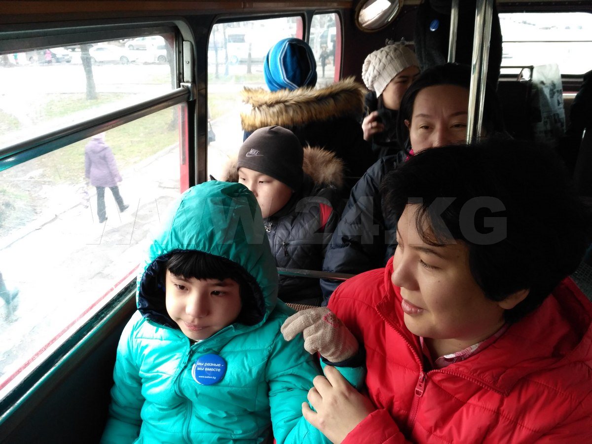 Дети погуляли возле кинотеатра «Ала-Тоо», и красный автобус с детьми двинулся дальше, чтобы заявить миру: «Мы разные, но мы вместе».