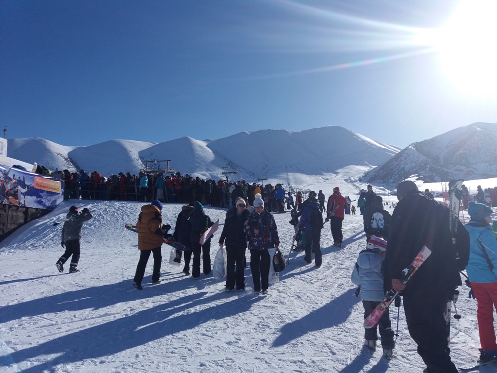 Где отдохнуть и согнать жирок после новогодних застолий? Часть бишкекчан решила провести время с пользой и отправилась подышать свежим воздухом в горы. Близ Бишкека работают десятки горнолыжных баз. Самой популярной 2 января оказалась база «Чункурчак».