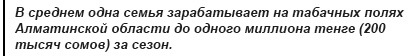 В Алматинской области в крупном райцентре Есик только по официальным данным на полях заняты 345 граждан Кыргызстана. Из них лишь 60 работают официально и по договору. За них работодатели платят страховые взносы в три тысячи тенге (600 сомов) и налог за привлечение иностранной рабочей силы в две тысячи тенге (400 сомов).