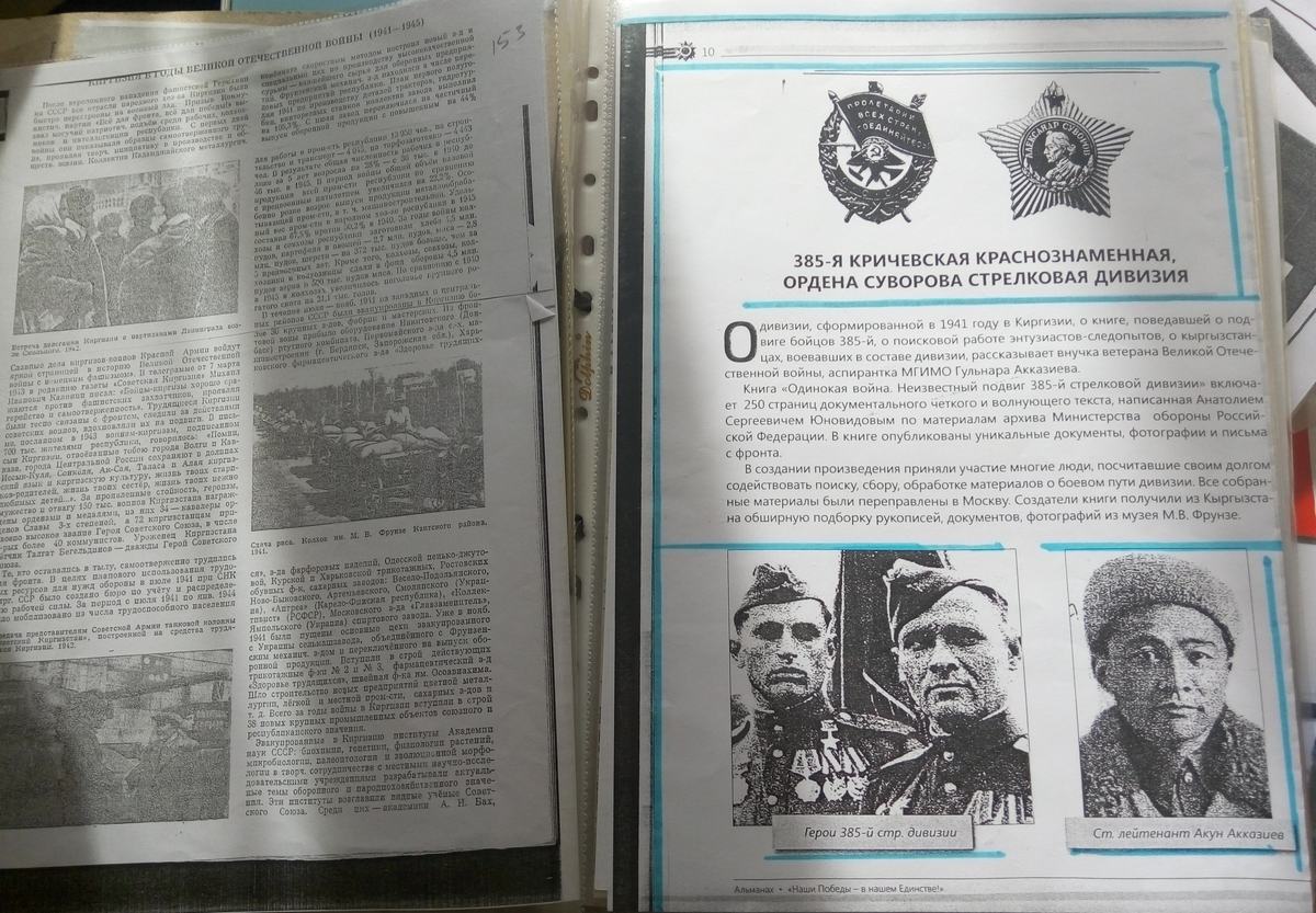 - Альбомов у меня много. Восемнадцать (хранятся в тумбочках, шкафах, лежат на столе). Раздаю собранную информацию мешками в наши музеи – Исторический и имени Фрунзе. Литературу раздариваю. Чтобы помнили.