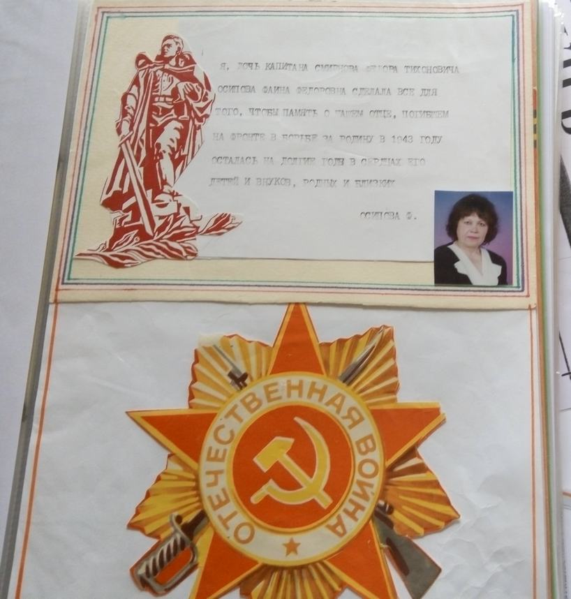 - Нет, учитель русского языка и литературы, - улыбается она. - А тема войны у меня для души. Почему для души? Потому что наш папа Федор Тихонович Смирнов ушел на фронт добровольцем и погиб в бою.