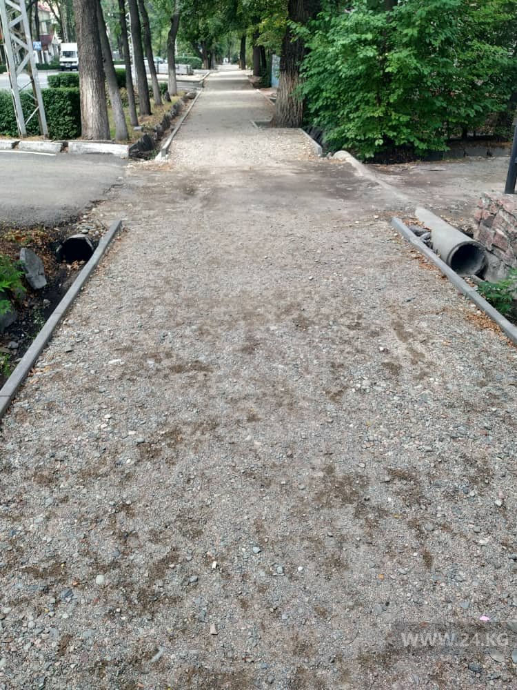 Тротуар на улице Московской от проспекта Манаса до улицы Акиева не могут сделать уже почти полгода. Об этом 24.kg сообщил читатель.