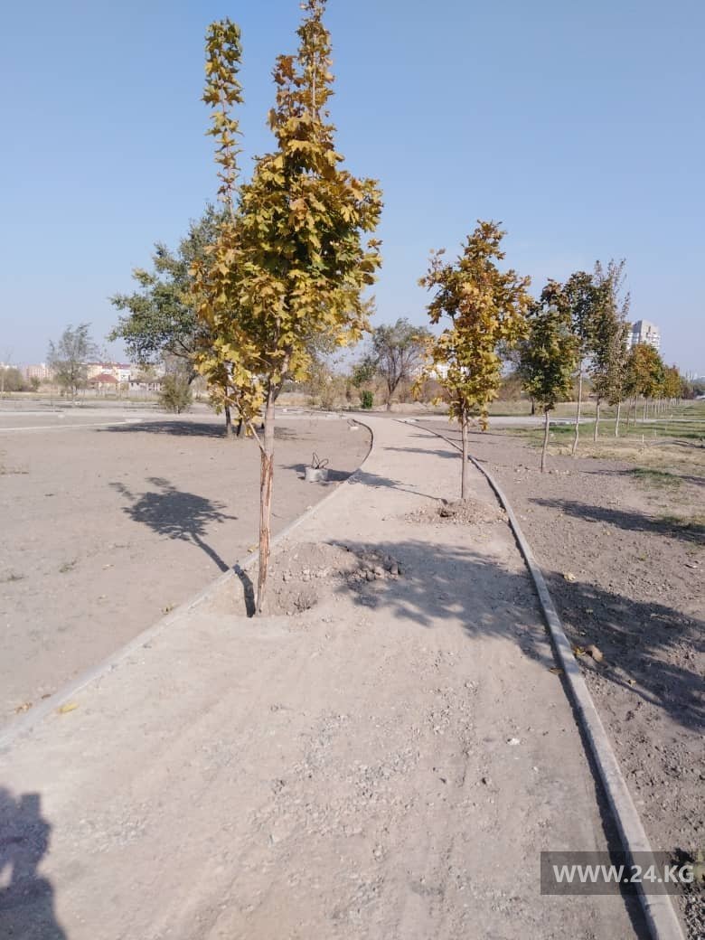 В Бишкеке в парке на улице Токомбаева деревья оказались посреди пешеходных дорожек. Об этом 24.kg сообщили читатели.