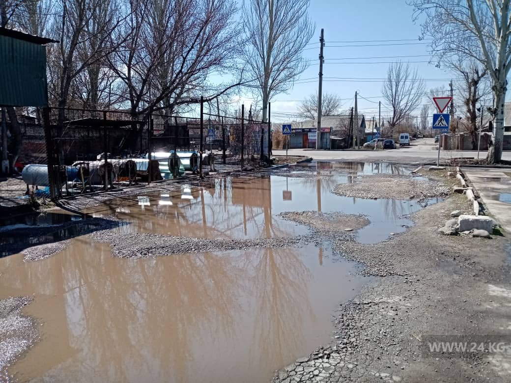 «Перекресток улиц Можайского и Тоголока Молдо. Невозможно проехать и пройти, а зимой вообще лед, кататься можно», — написал автор снимка.