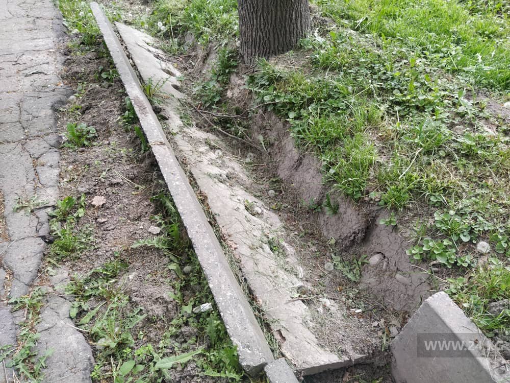 В Бишкеке на отрезке улицы Фрунзе от Абдрахманова до бульвара Эркиндик разбиты тротуары и арыки. Об этом 24.kg сообщил читатель.