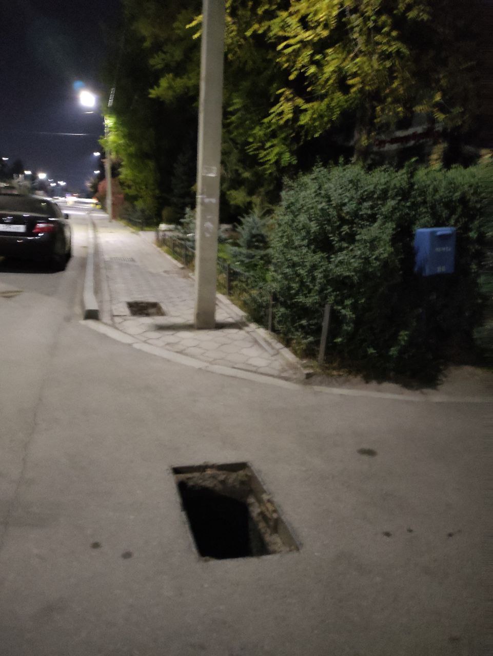 Жители Бишкека жалуются на открытые люки на улице Токтоналиева. Фотографии опубликованы в Telegram.