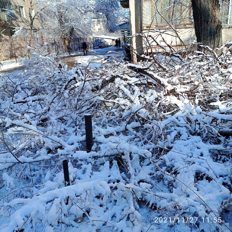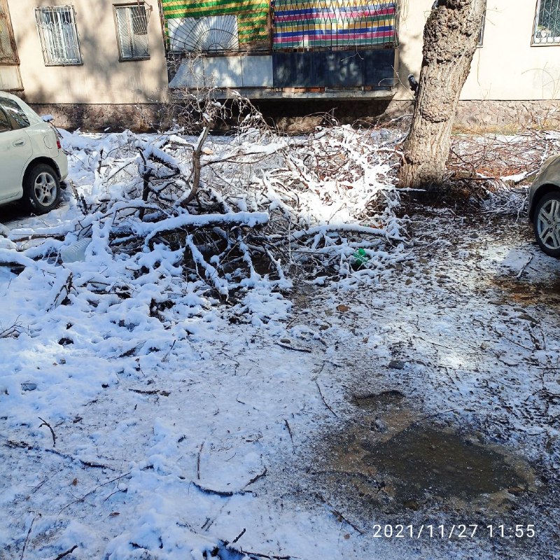 В Бишкеке уже две недели не убирают сухие спиленные ветки. Об этом 24.kg сообщил читатель.