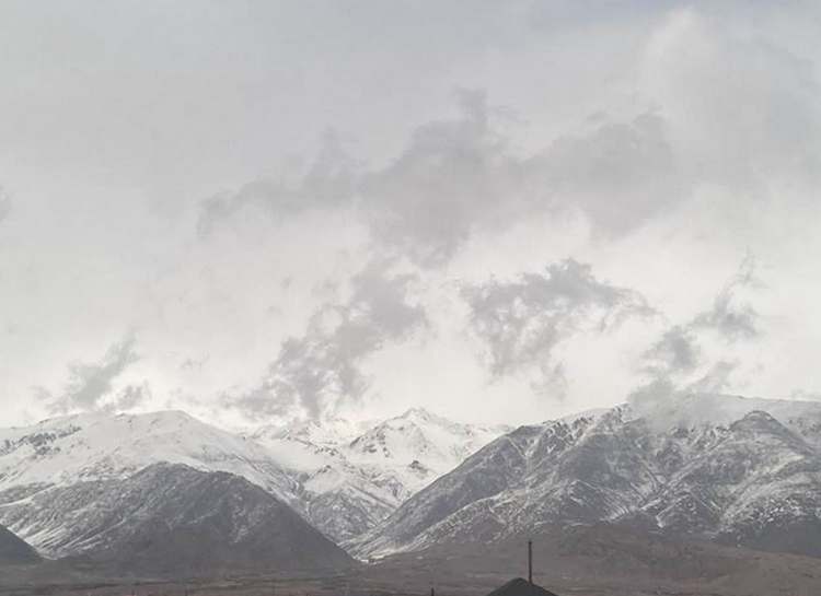 А это уже иссык-кульское Бостери. Фотографию заснеженных вершин в конце марта сделала Толекан Исмаилова.
