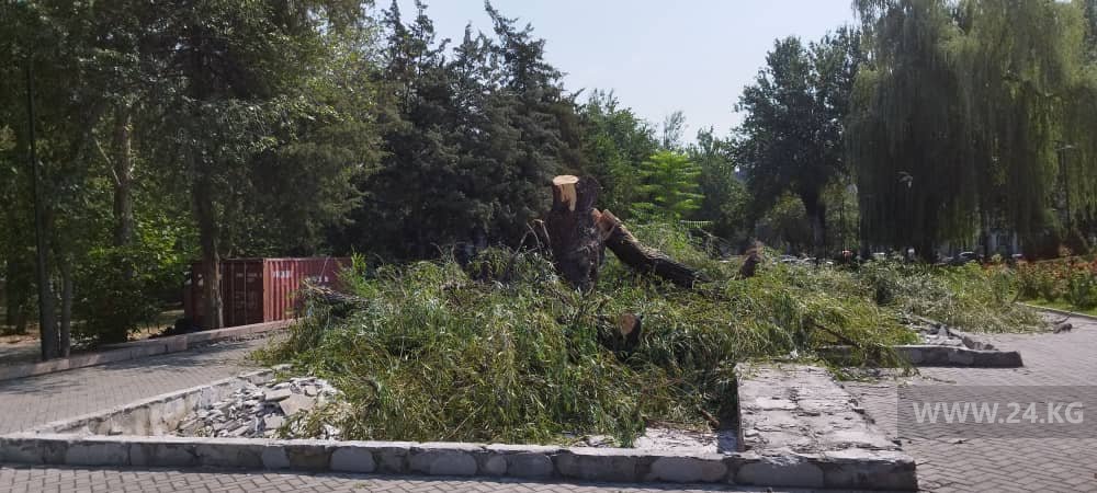 По словам сотрудников МП «Бишкекзеленстрой», деревья старые и нуждаются в замене. На их месте обещают высадить новые саженцы.