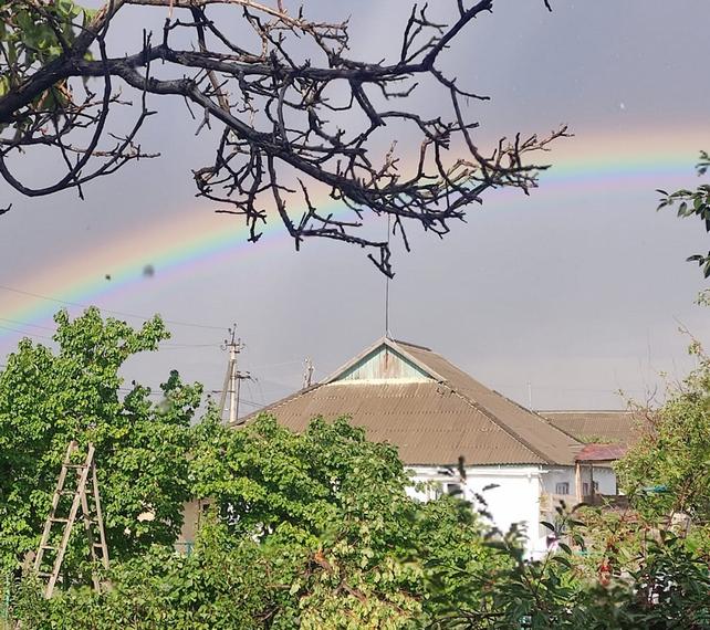 И еще другое природное явление — после сентябрьского града в селе Тамчи небосвод украсила потрясающая полная радуга.
