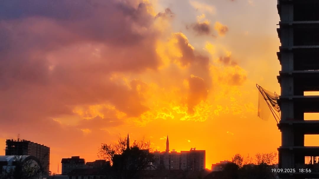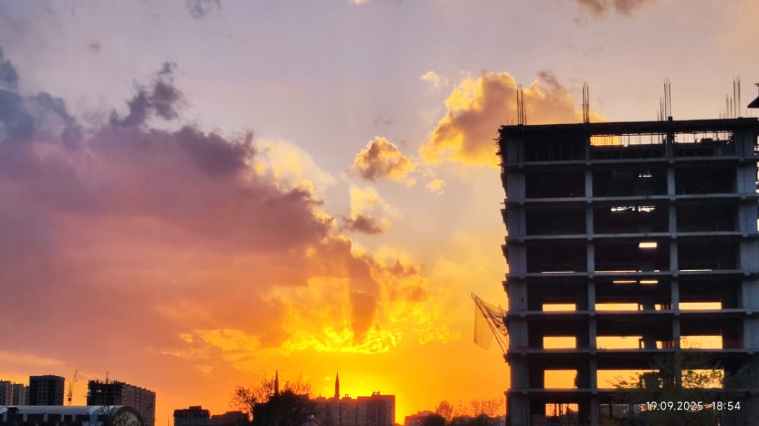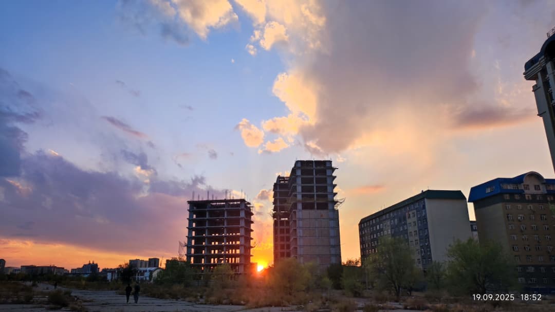 Немного полюбуемся закатом в Бишкеке. Его сфотографировал в конце сентября Николай Манаковский.