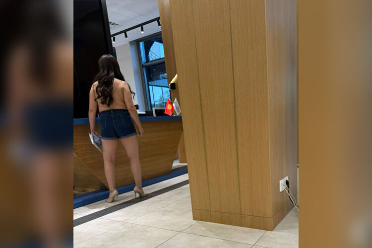 В одном из банков Бишкека заметили полуголую девушку. Об этом 24.kg сообщили очевидцы.