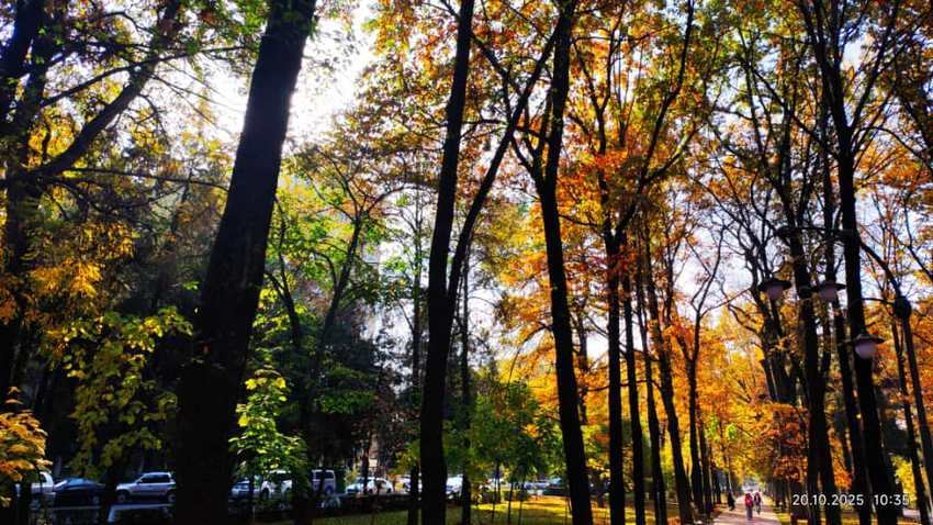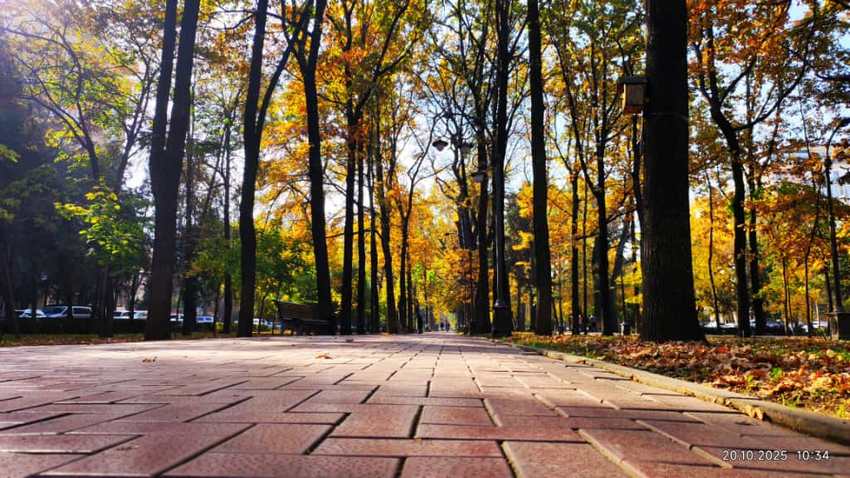 В Бишкеке похолодало, уже прошел снег, но мы вернемся в нашу золотую осень. Вместе с Николаем Манаковским прогуляемся по октябрьскому бульвару Эркиндик.