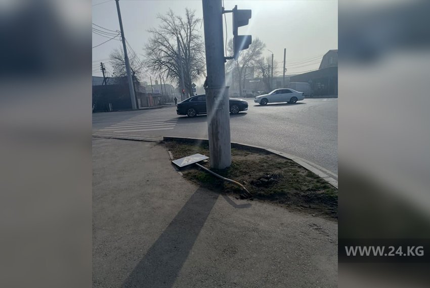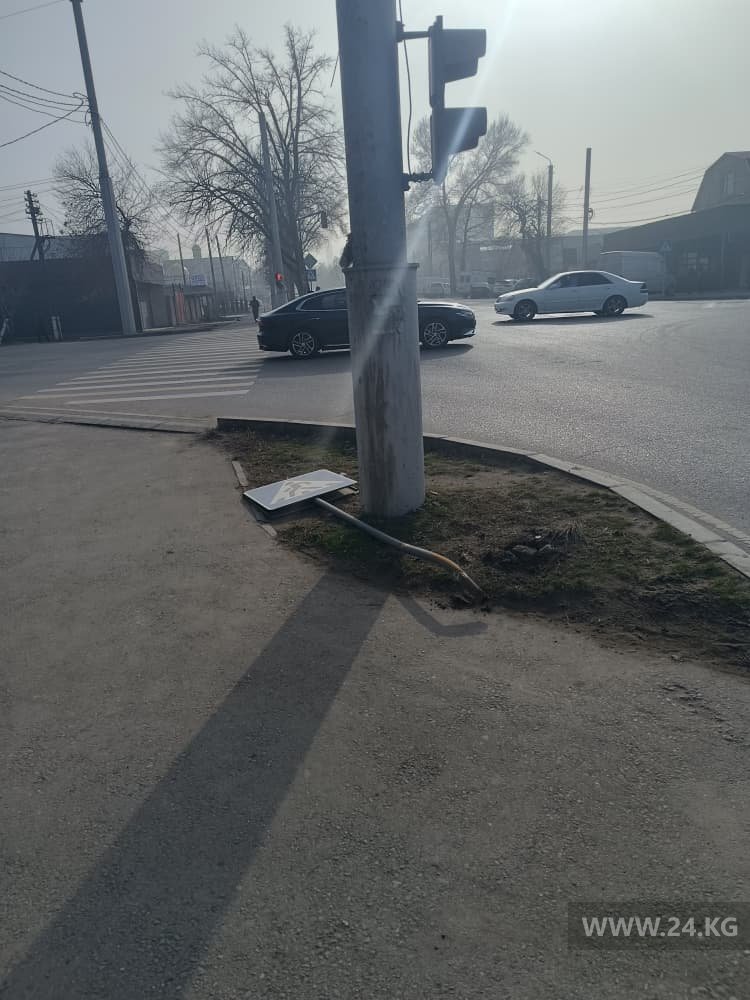 Бишкекчанин просит восстановить упавший дорожный знак. Фото он прислал 24.kg.