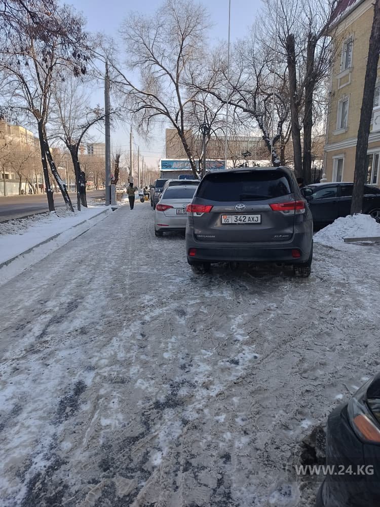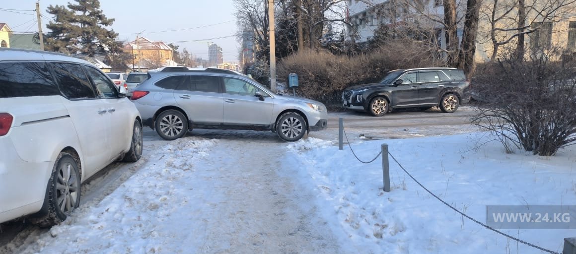 Владельцы продолжают оставлять машины на тротуарах, мешая пешеходам. Бишкекчане присылают 24.kg фотофакты таких «чудаков».
