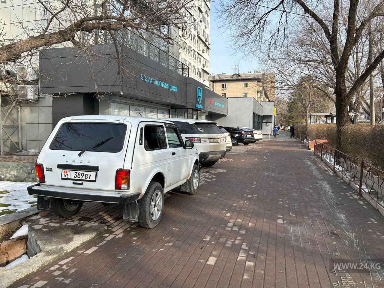 На пересечении улиц Тыныстанова и Туголбая Ата частная стоматологическая клиника устроила бесплатную парковку на тротуаре.