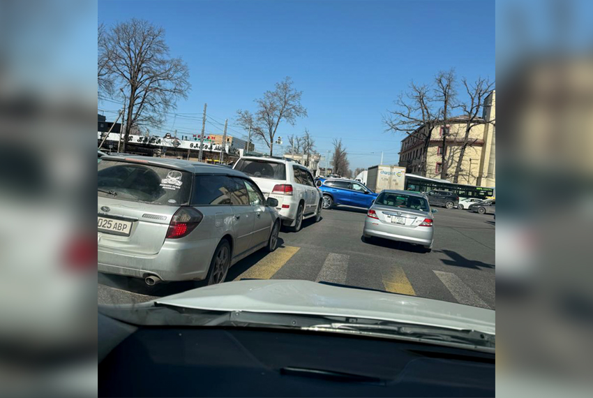Большие пробки образовались из неработающего светофора на пересечении проспекта Жибек Жолу и улицы Абдрахманова. Об этом 24.kg сообщили читатели.