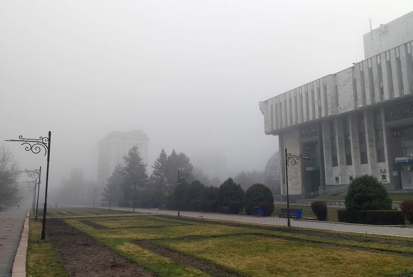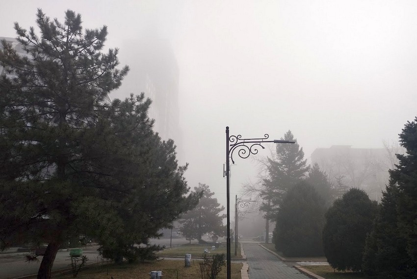 В конце прошлого года Бишкек часто погружался в туман. Вот и утром 22 февраля город затянуло белой пеленой, правда, не очень плотной. Но все-таки многие здания просто растворились в тумане.