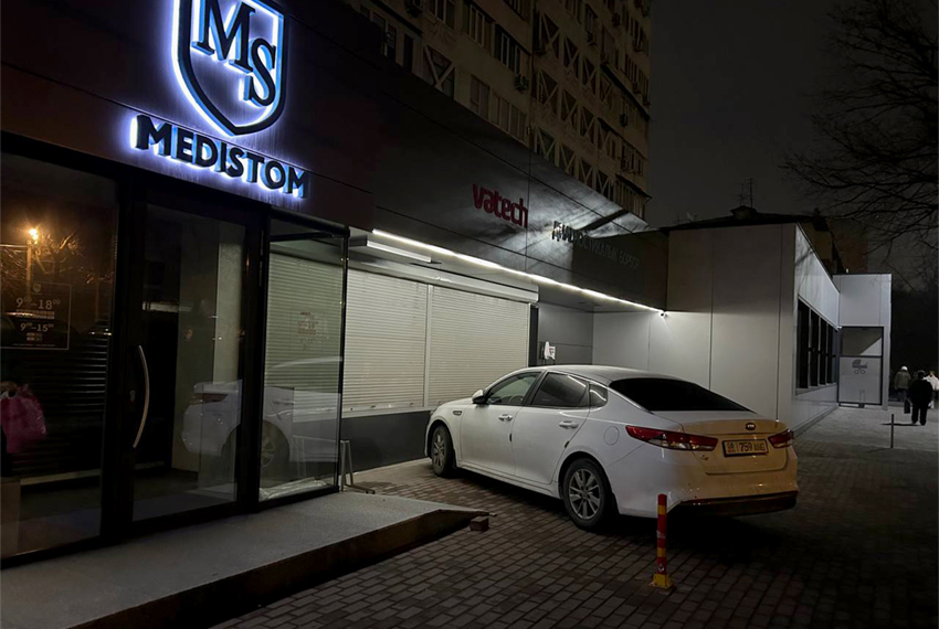 Частная стоматологическая клиника устроила на тротуаре, расположенном на улице Туголбая Ата, служебную парковку и электрозаправку. Об этом 24.kg написала читательница.