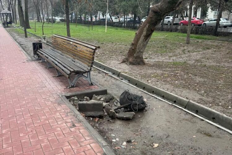 Жители Бишкека пожаловались на разбитую урну на бульваре Эркиндик рядом с детской площадкой. По их словам, она находится в таком состоянии уже более месяца.
