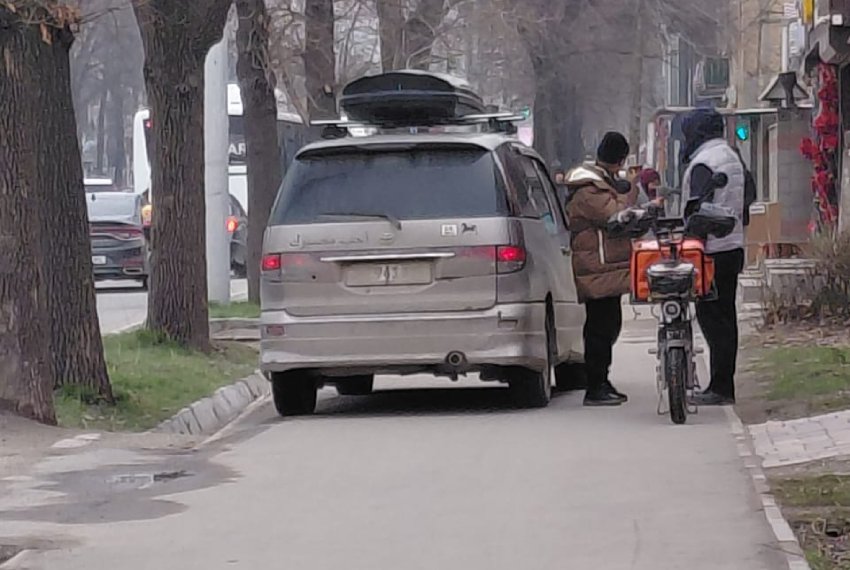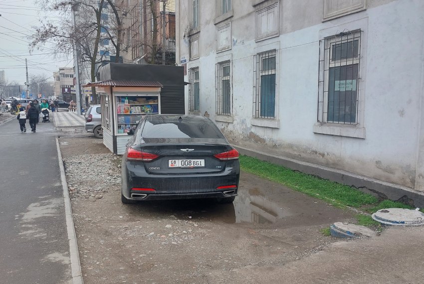 Так, на улице Тыныстанова, 213 автомобили регулярно паркуют в местах, предназначенных для пешеходов.
