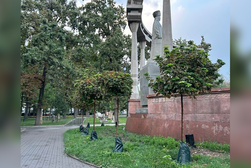 В Бишкеке за памятником Курманджан датке исчезли все клены. Об этом в редакцию 24.kg написал читатель.