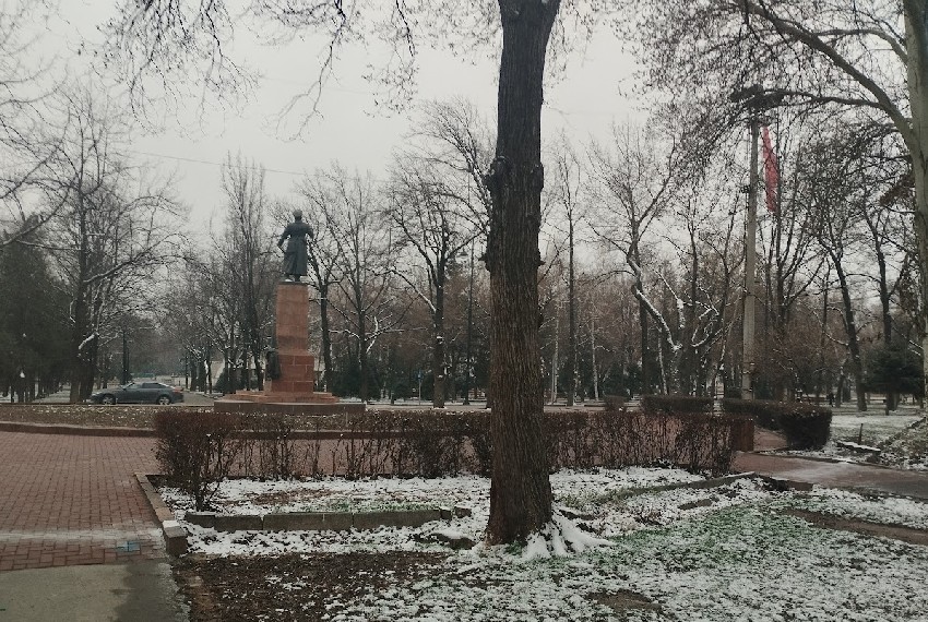 Сначала прогуляемся по Бишкеку, который пока еще пребывает в серых тонах зимы. По центру столицы гуляла и делала фотографии Мээрим Акназарова.