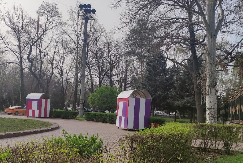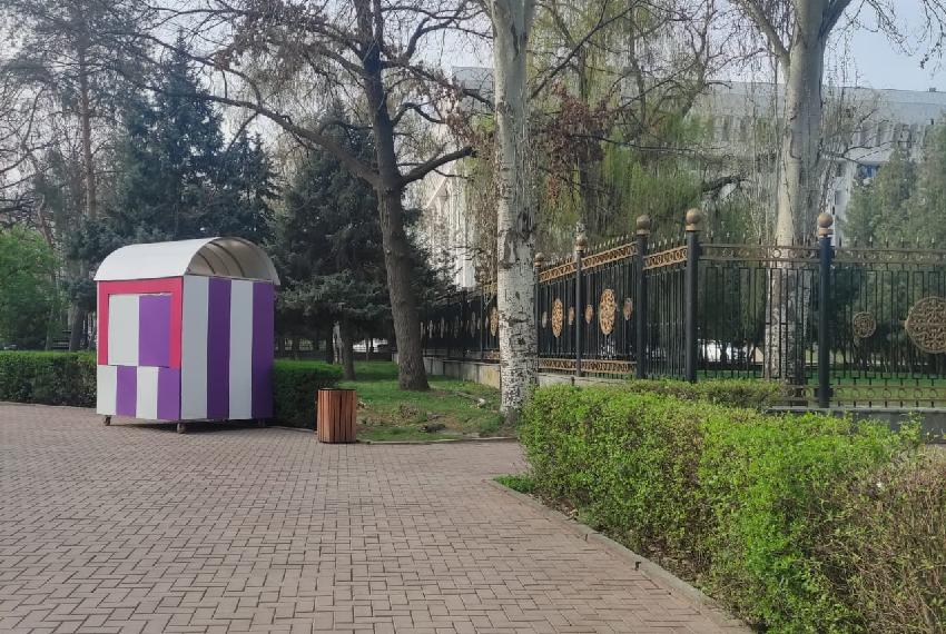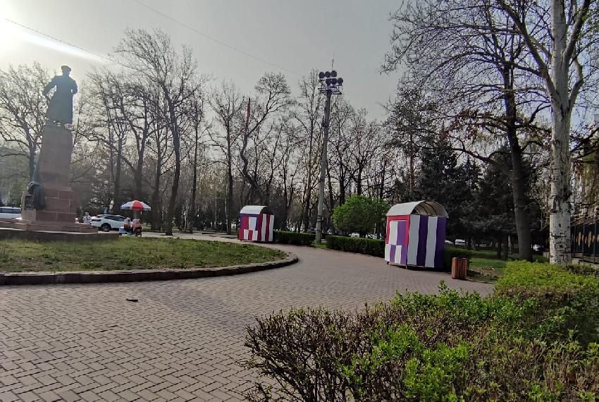 С наступлением тепла ларьки странных конструкций и расцветок стали захватывать центр Бишкека. Теперь они появились прямо у порога Жогорку Кенеша — у памятника Ивану Панфилову. Об этом 24.kg сообщили читатели.