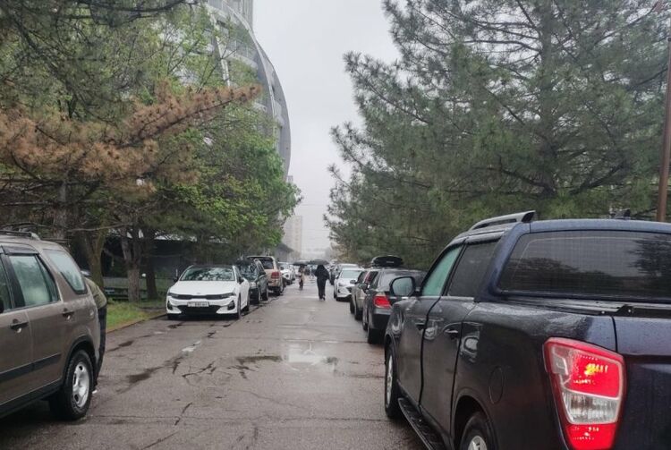 Ранее тяжелые блоки установили, чтобы предотвратить парковку автомобилей на пешеходной зоне. Но, по словам горожан, неизвестные сдвинули их в сторону, после чего машины вновь начали занимать пространство — теперь парковка осуществляется в два ряда.