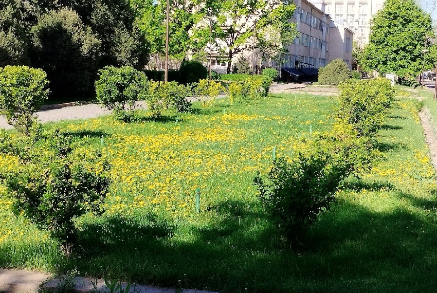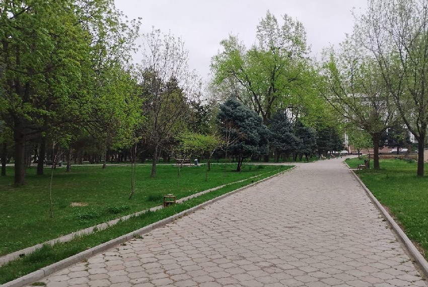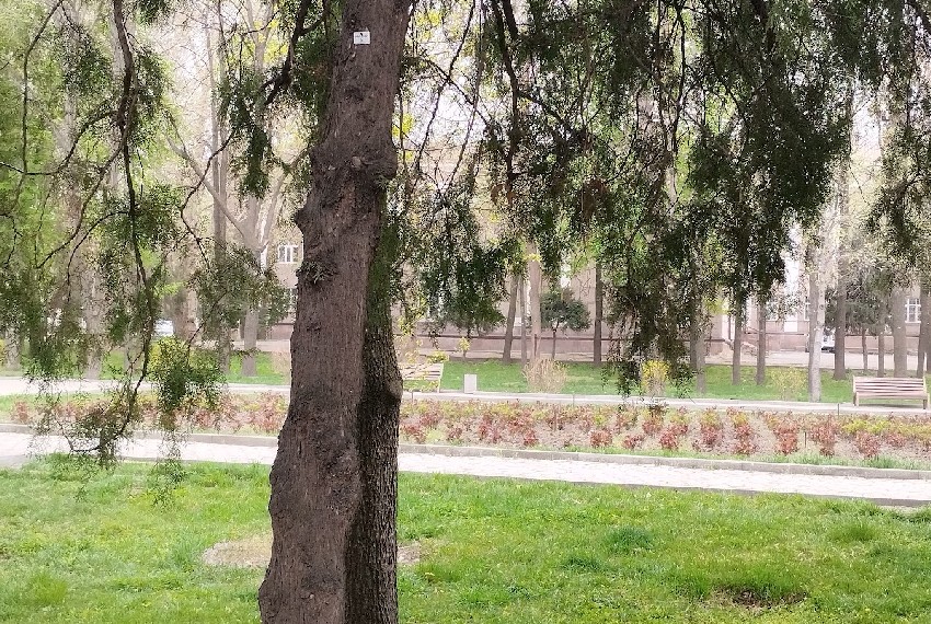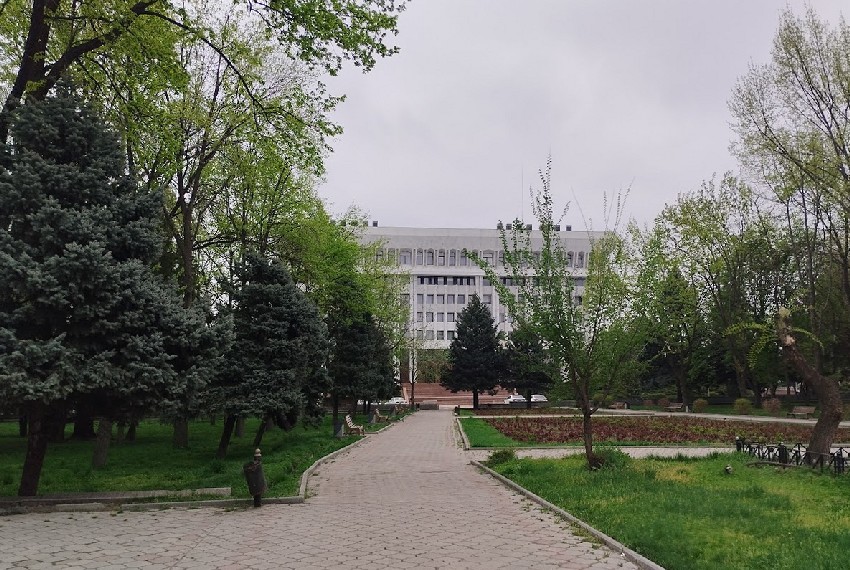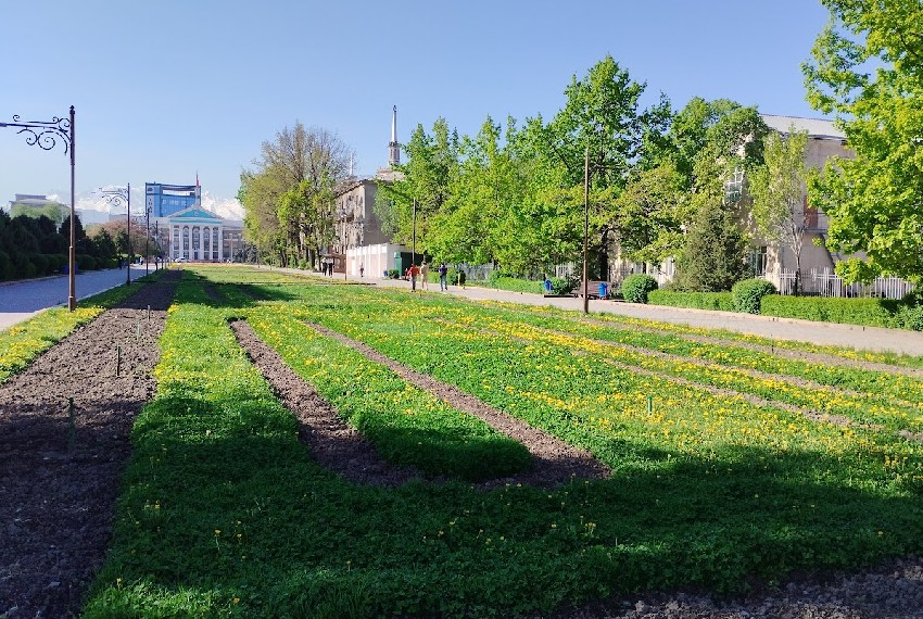 Сначала прогуляемся по центру столицы. Да, здесь еще остались тенистые и прохладные скверы. Например, у «Белого дома». Фотографии в начале апреля сделала Мээрим Акназарова.