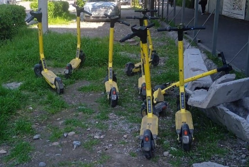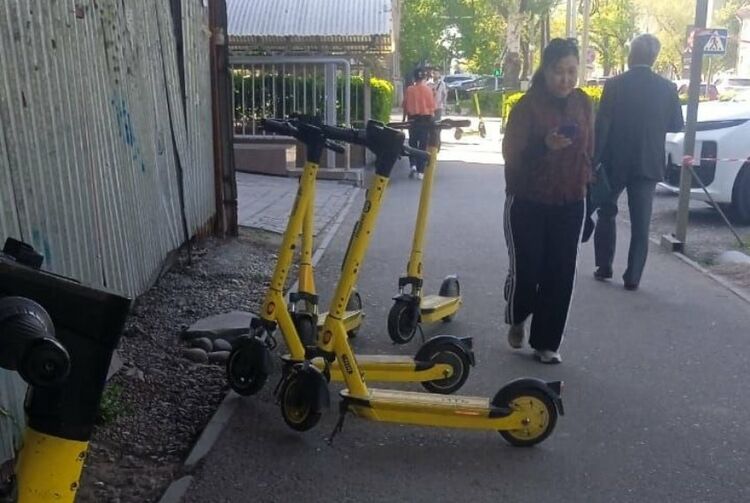 По их словам, на пересечении улиц Панфилова и Боконбаева весь тротуар оказался занят самокатами. Людям пришлось самостоятельно убирать их с прохода, чтобы освободить путь.