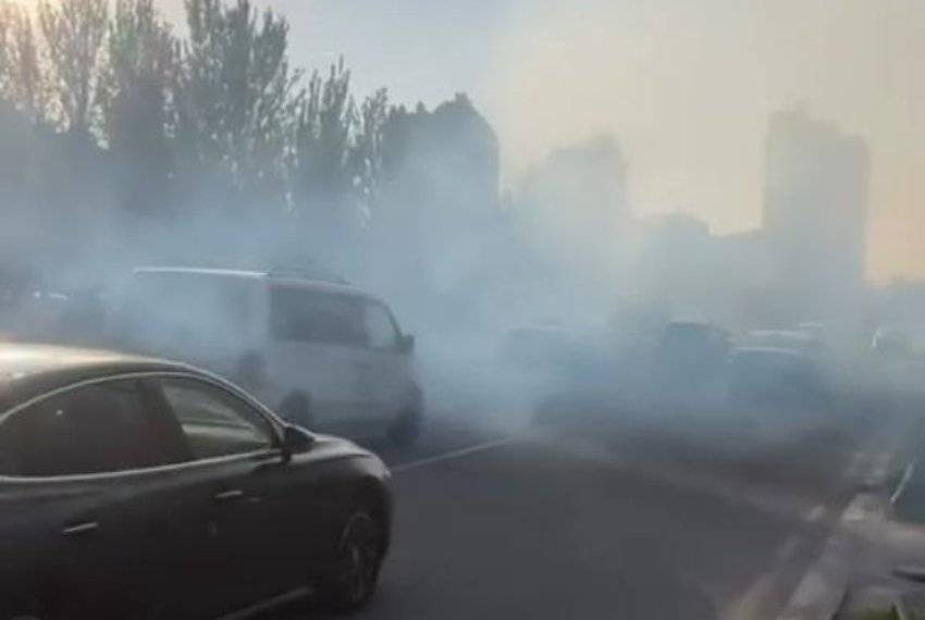 Бишкекчане сообщили о сильном задымлении, которое, по их словам, вызвала крупногабаритная спецтехника, передвигавшаяся по Южной магистрали.